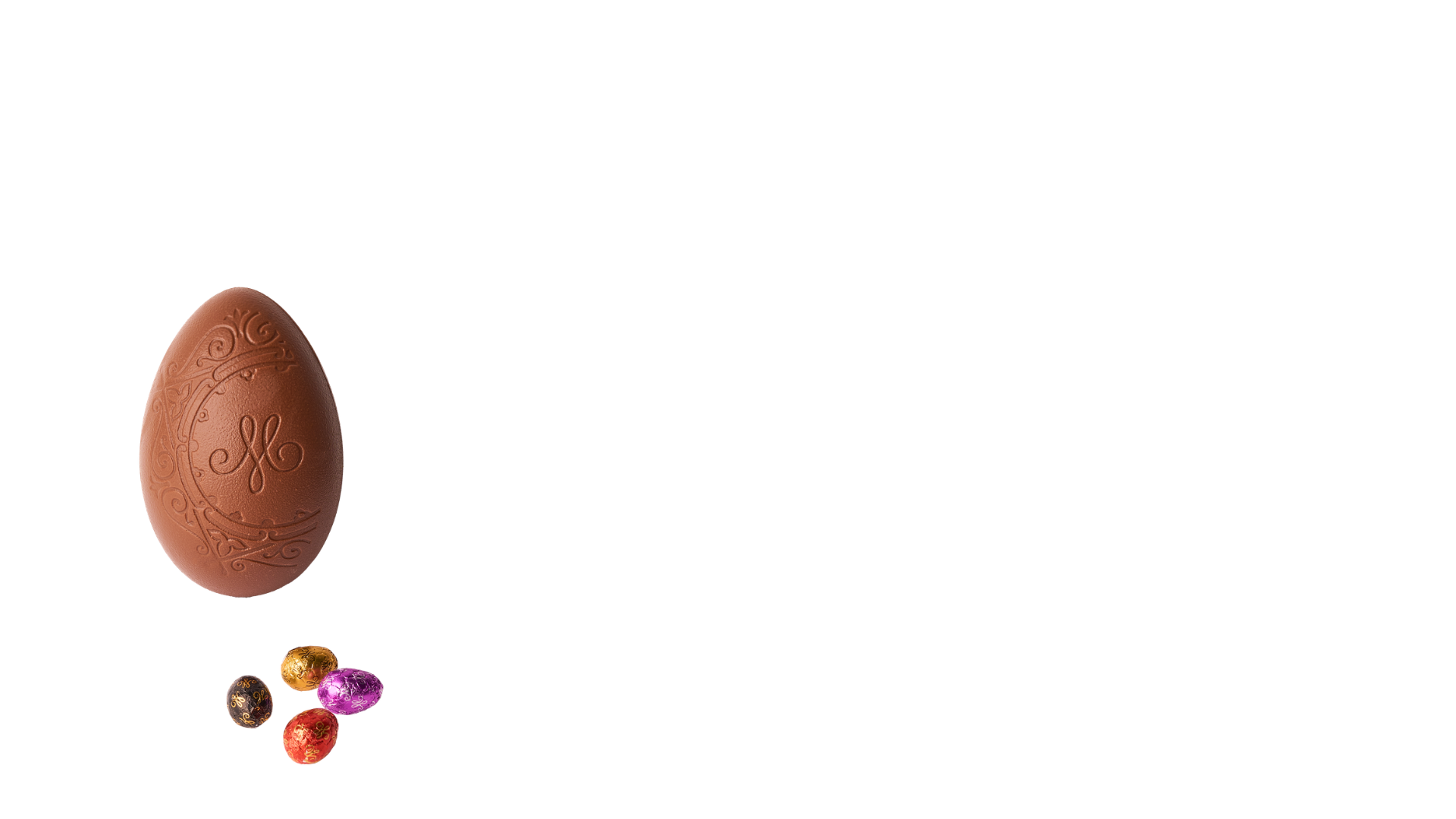 Milk chocolate Easter egg filled with little chocolate eggs (white chocolate, dark chocolate and milk chocolate).