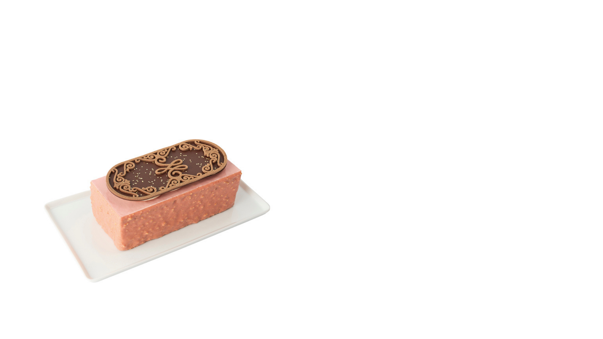 Crispy cocoa shortbread, soft cocoa and almond biscuit, creamy Madagascar chocolate, chocolate caramel and tonka bean, light Venezuelan chocolate mousse, crunchy chocolate