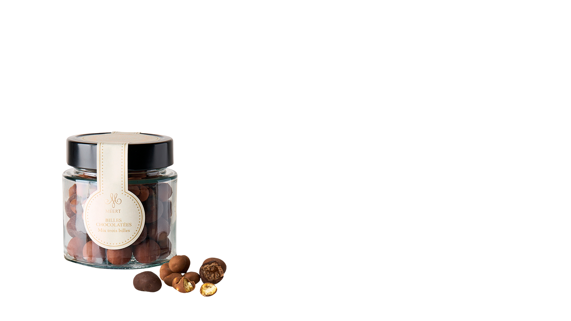 Assortiment de billes chocolatées (noisettes caramélisées, maïs grillé salé, caramel tendre vanille)
