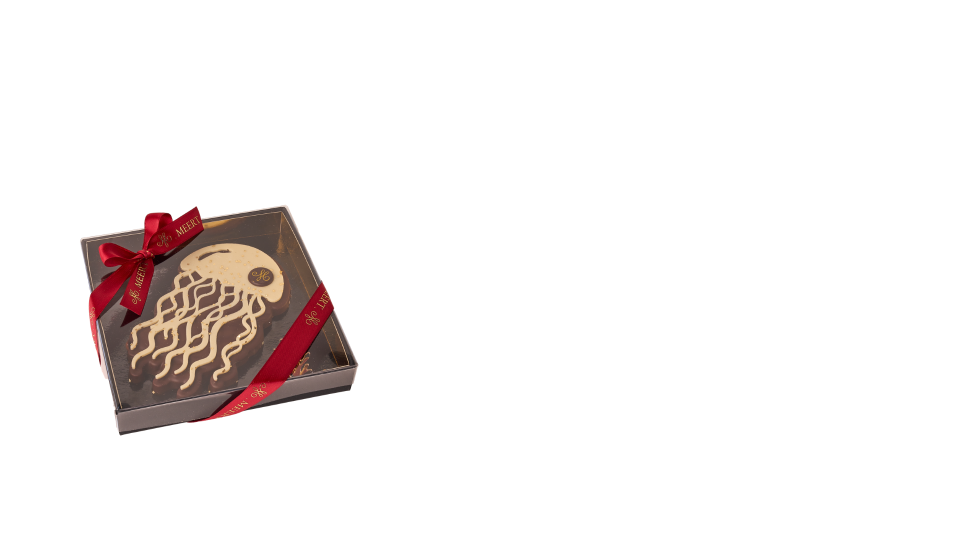 Bouchée méduse au chocolat noir, composée d'un praliné au sésame grillé, ganache lactée à la vanille de Madagascar